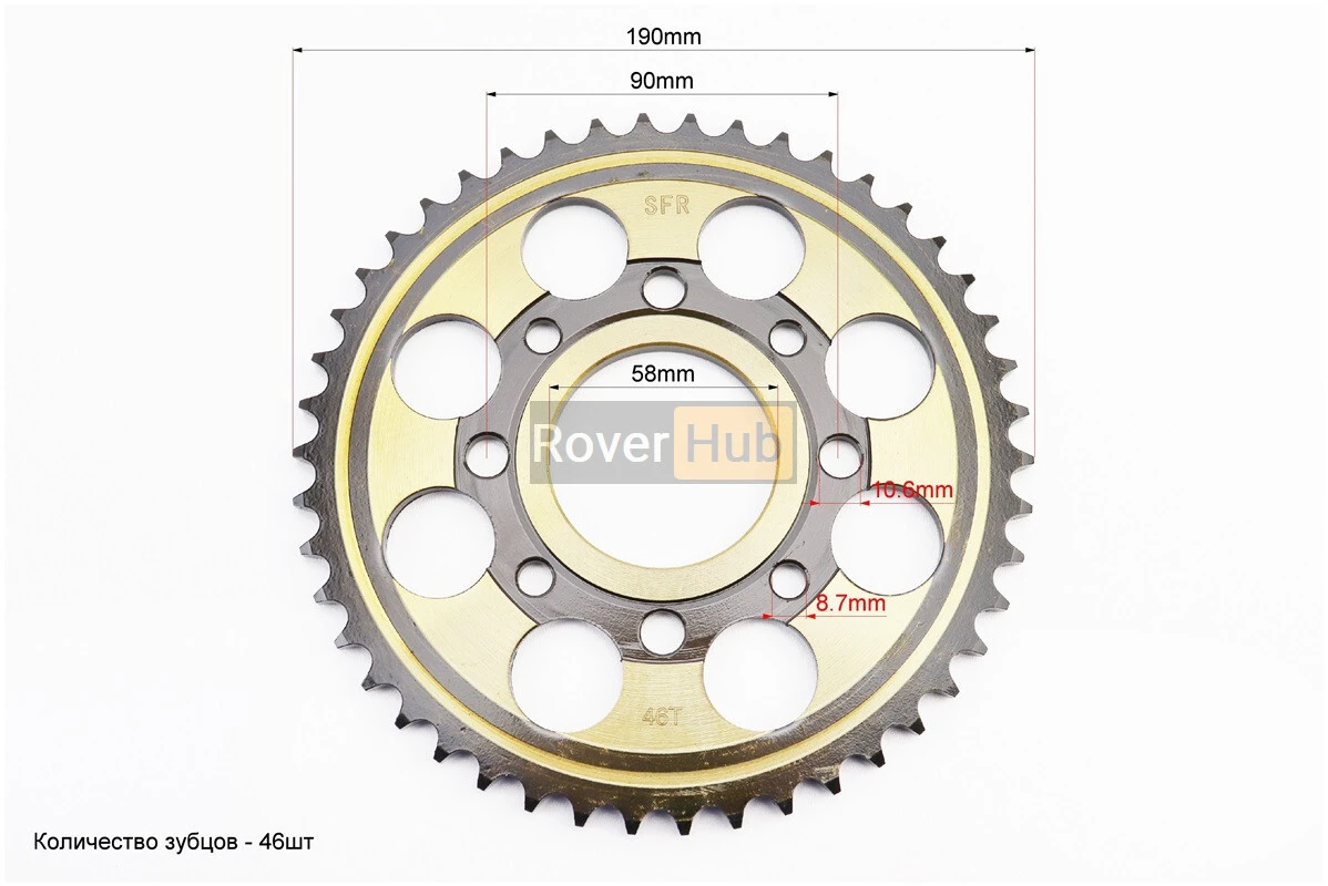 Зірка задня WY125 - 428-46Т - d=58; 4отв.*90mm "гартована" (ZS125J спиці)