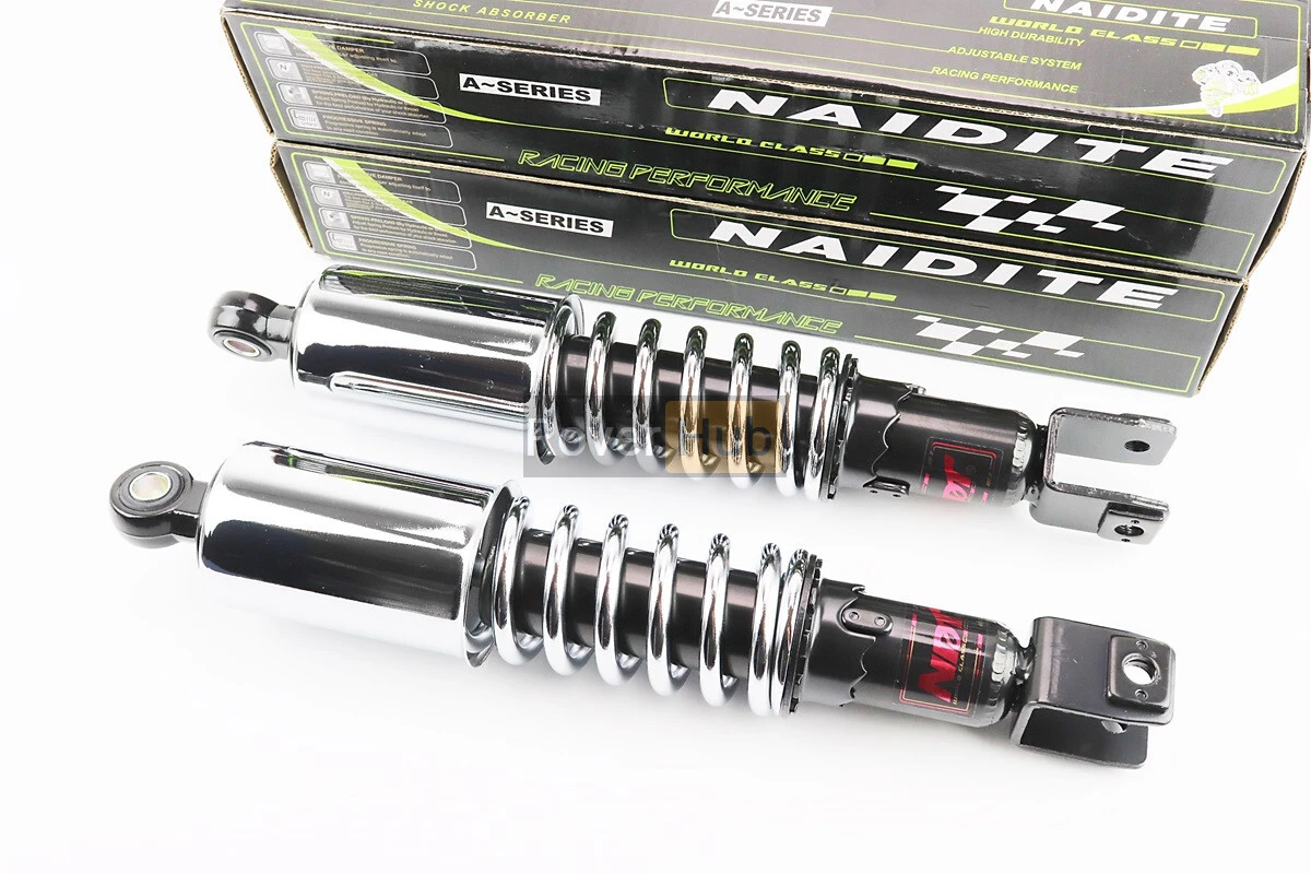Амортизатор задній 360mm * d64mm (втулка 12mm / вилка 10mm) з стаканом регулир., хром к-кт 2шт