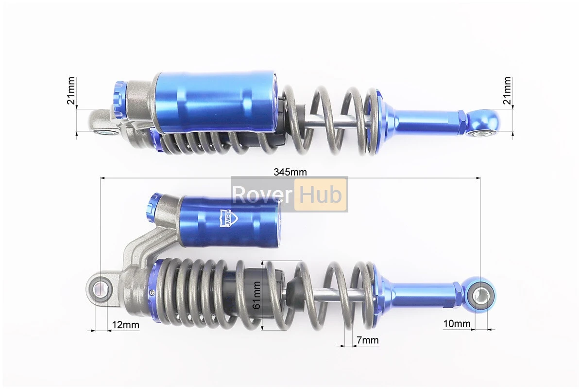 Амортизатор задній GY6 - 345мм*d61мм (втулка 12мм / втулка 10мм) газовий регул., графіт-синій к-кт 2шт