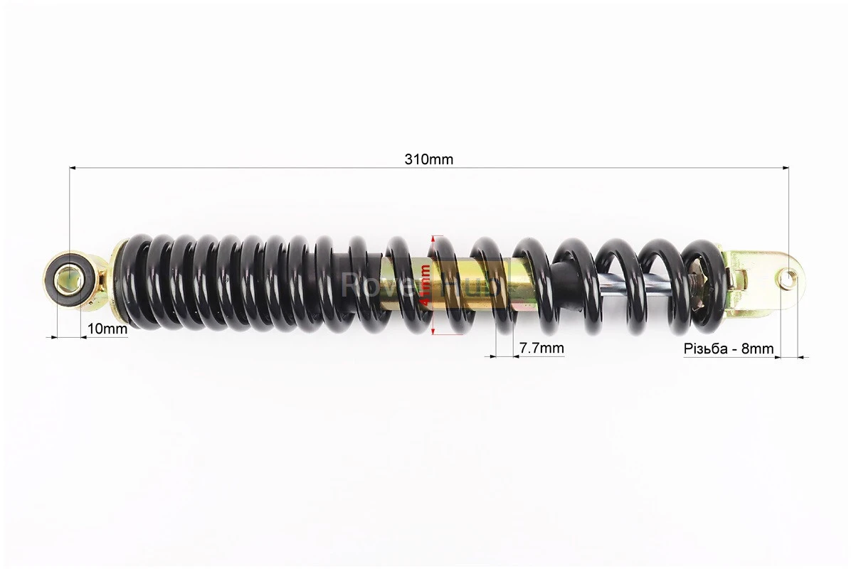 Амортизатор задній GY6/Honda - 310мм*d41мм (втулка 10мм / вилка 8мм), чорний
