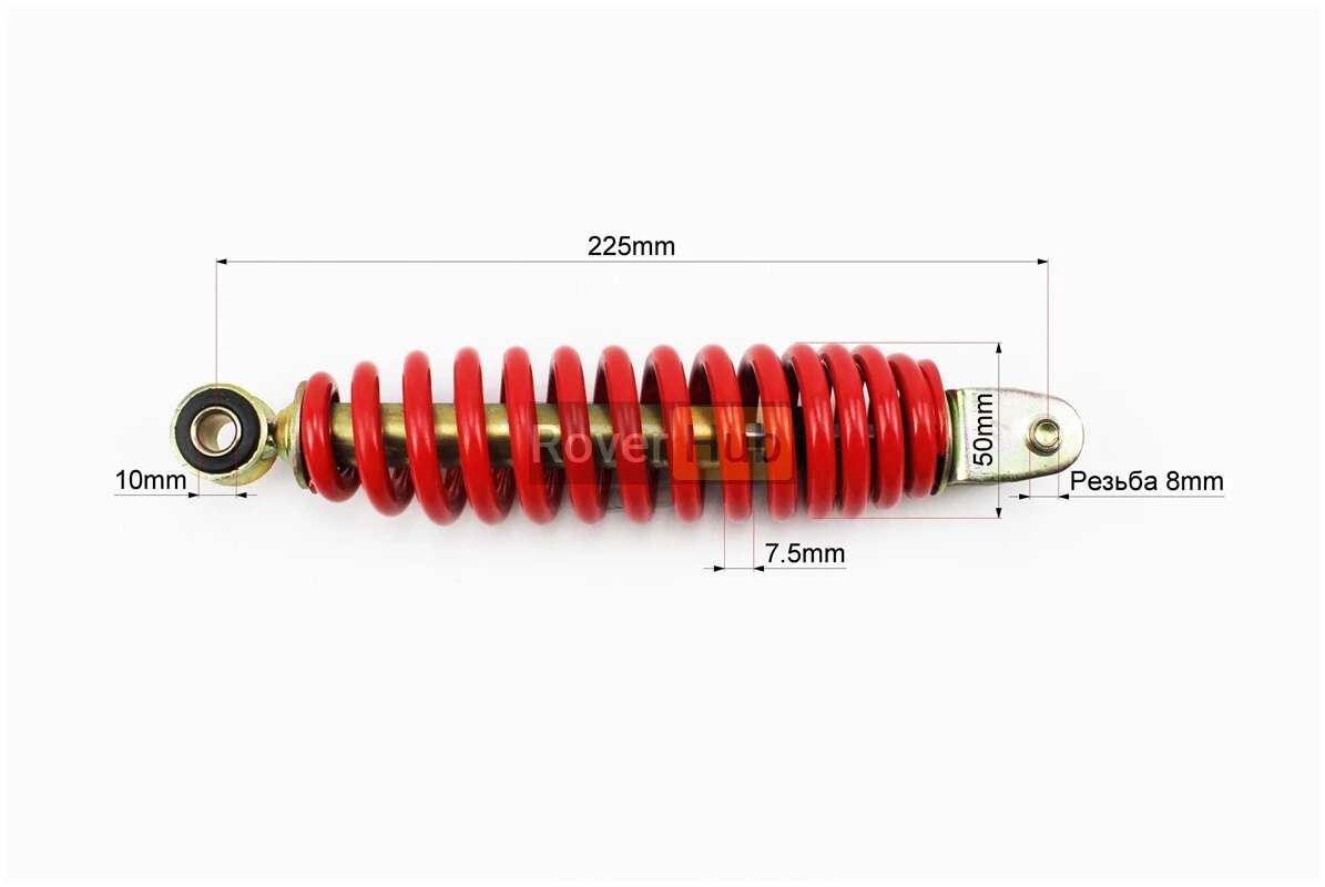 Амортизатор задній GY6/Yamaha - 225мм*d50мм (втулка 10мм / вилка 8мм), червоний