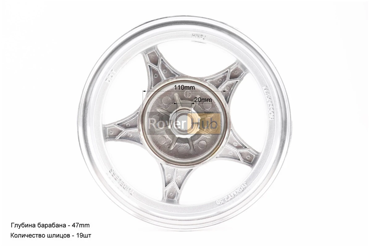 Диск задній литий MT2,50x10 Z19 для 4Т (бараб. гальм., d-110мм) "5 променів" сірий, тип 1