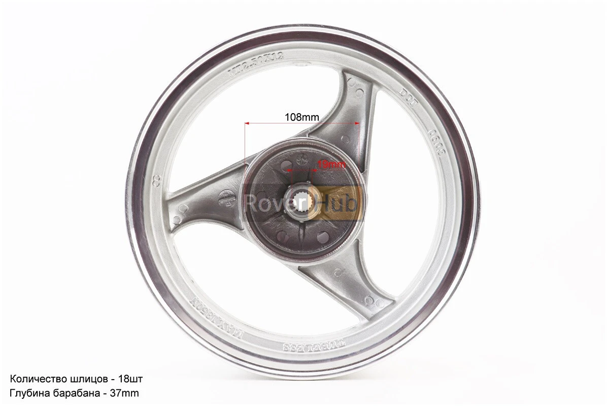 Диск задній литий MT2,50x12 Z18 для 2Т (бараб. гальм., d-108мм) "3 промені" сірий