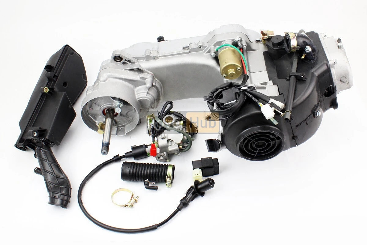 Двигун скутерний в зборі 4Т-80куб (довгий варіатор, довгий вал) + карбюратор, комутатор, котушка запалювання, повітряний фільтр