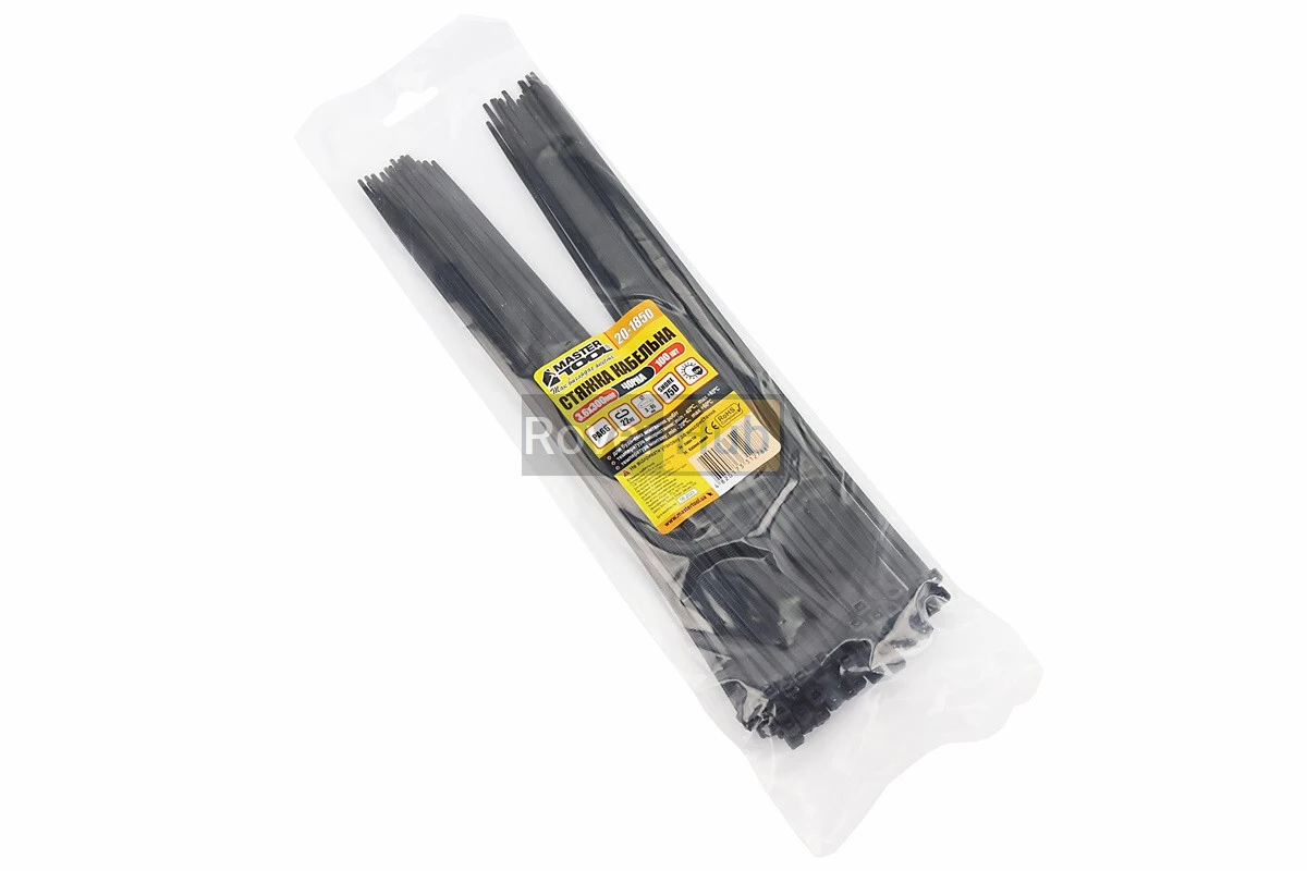 Хомут-стяжка пластикова 3,6x300мм к-кт 100шт, чорний 20-1850
