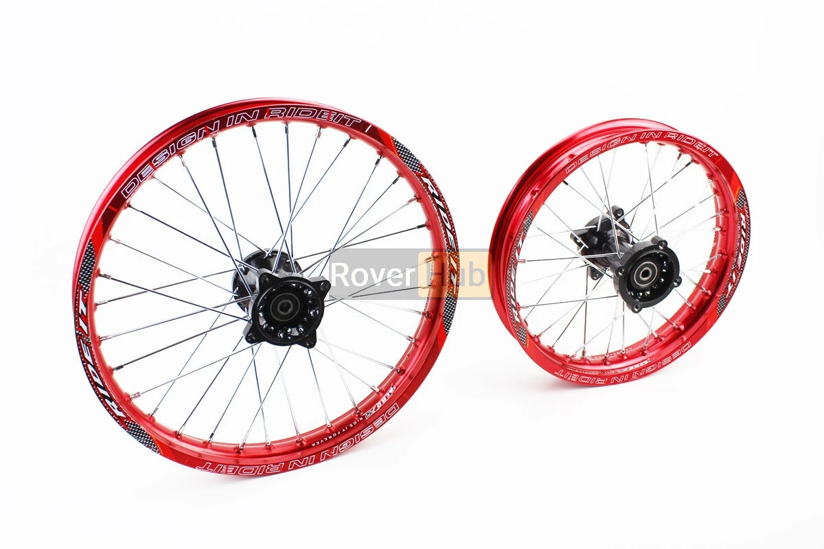 Колесо заднє спицьоване 14" вісь 12мм" + переднє спицьоване 17" вісь 12мм" к-кт 2шт, Kayo/Viper/Geon X-pit X-ride/YCF/Apollo/BSE, ЧЕРВОНИЙ