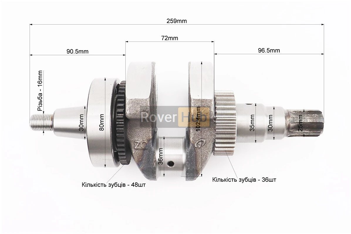 Колінвал 178F (Dшийки-36mm, H-102,4mm) під шліц + шестерні + підшипник, запресований