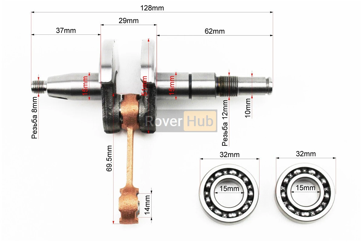 Колінвал, палець 10mm MS-180 + підшипник 10x14x11mm + підшипник 6002-2шт