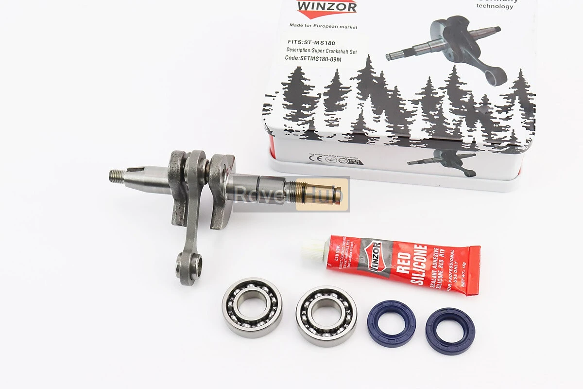 Колінвал, палець 10mm MS-180 + підшипник + підшипник 6002-2шт + сальник 15x25x5-2шт, металева коробка