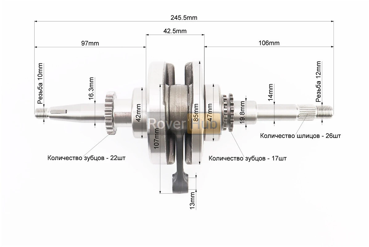 Колінвал у зборі (22зуб. на шестерні)