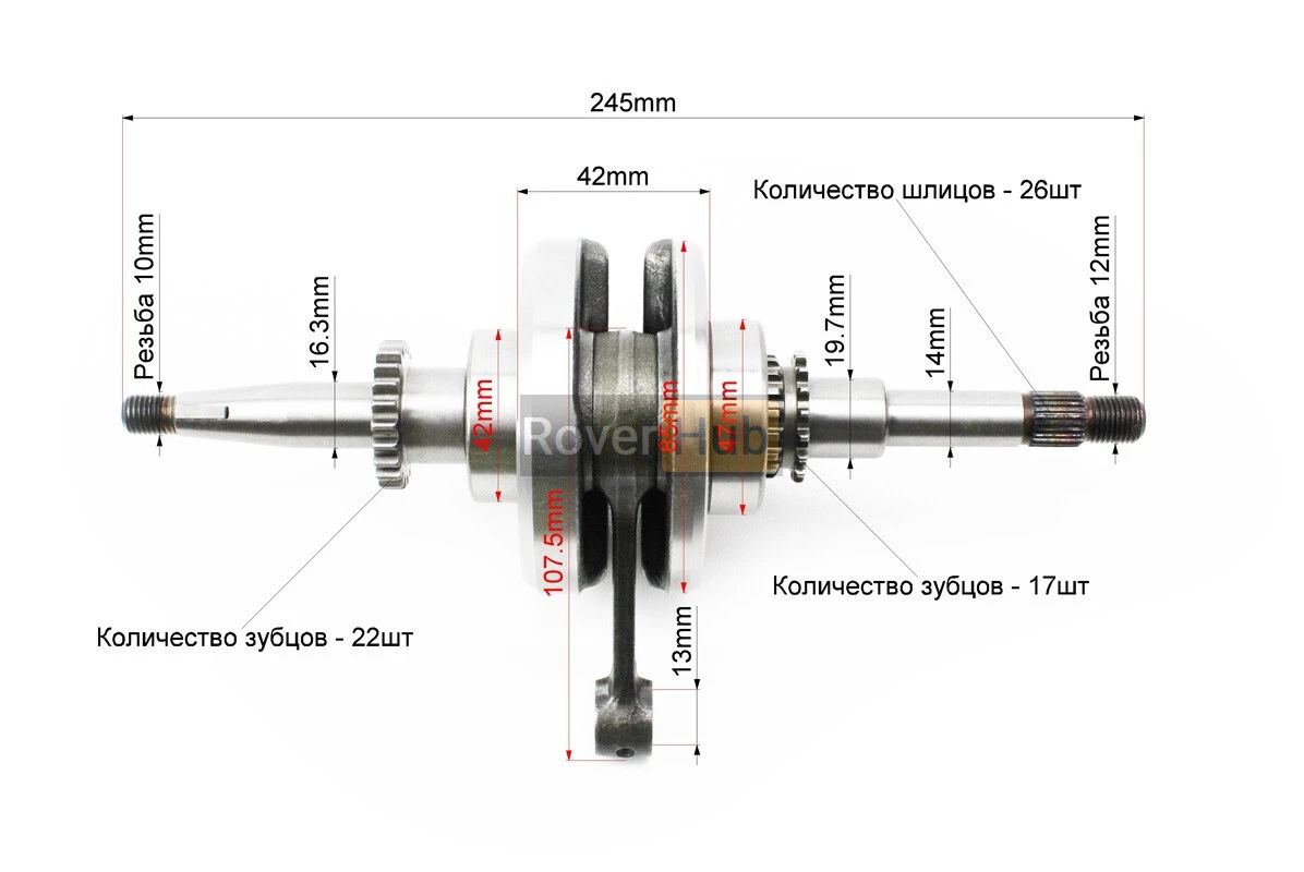 Колінвал у зборі (22зуб. на шестерні)