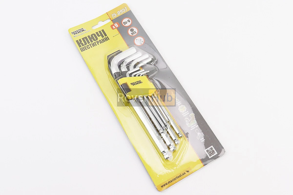 Набір Г-подібних ключів подовжених з кулястим наконечником HEX (1,5/2/2,5/3/4/5/6/8/10мм) CrV 75-0957