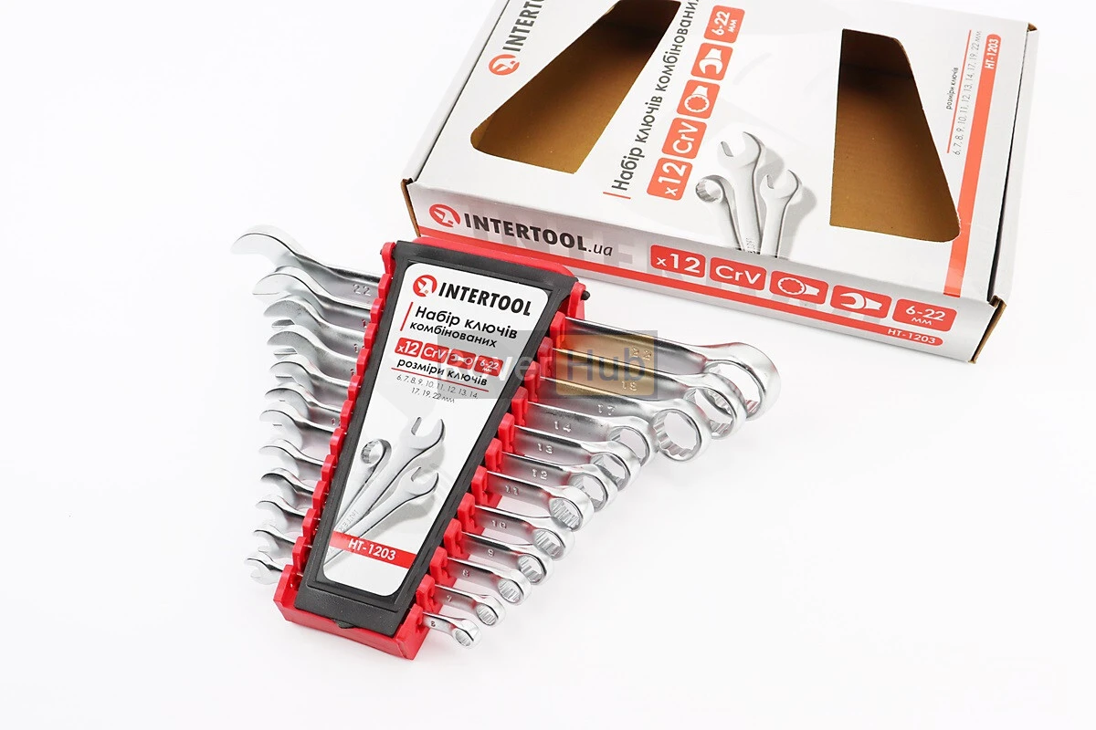 Набір ключів комбінованих 12шт (6/7/8/9/10/11/12/13/14/17/19/22мм) "пластиковий тримач" HT-1203