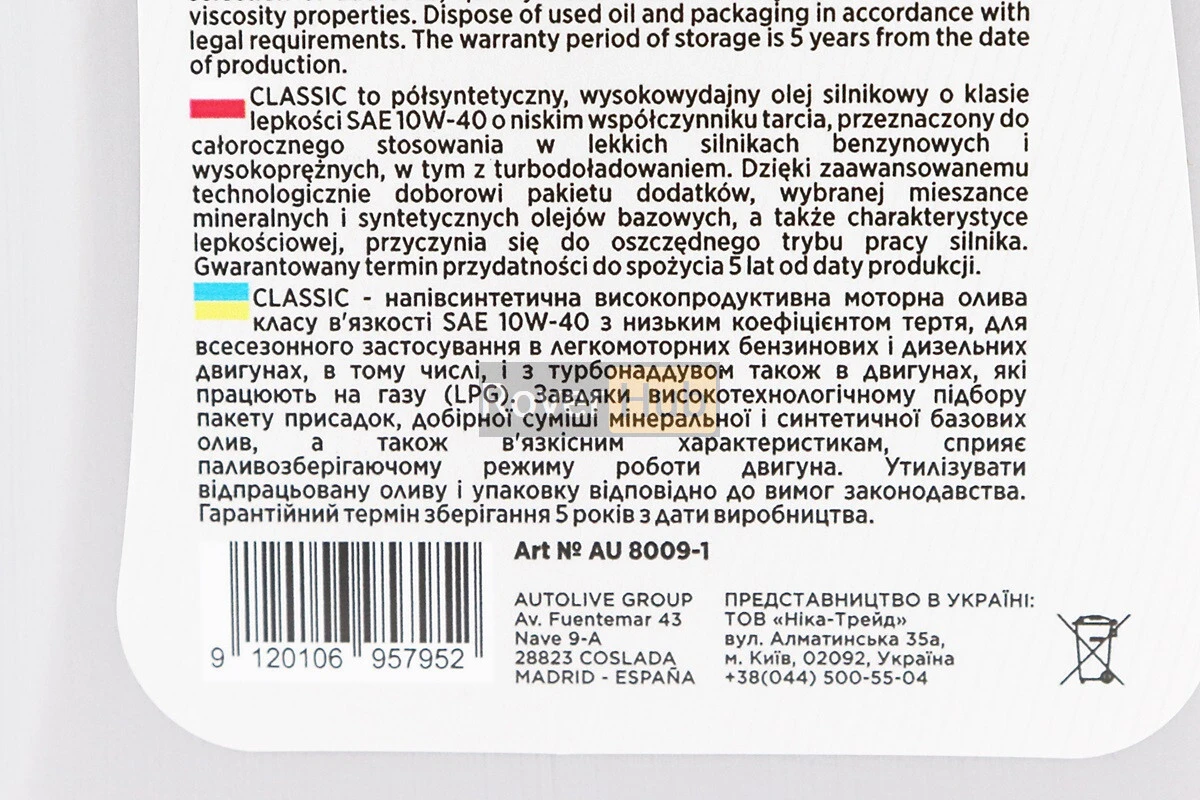 Олива 4T 10W-40 - напівсинтетична універсальна "Classiс", 1L