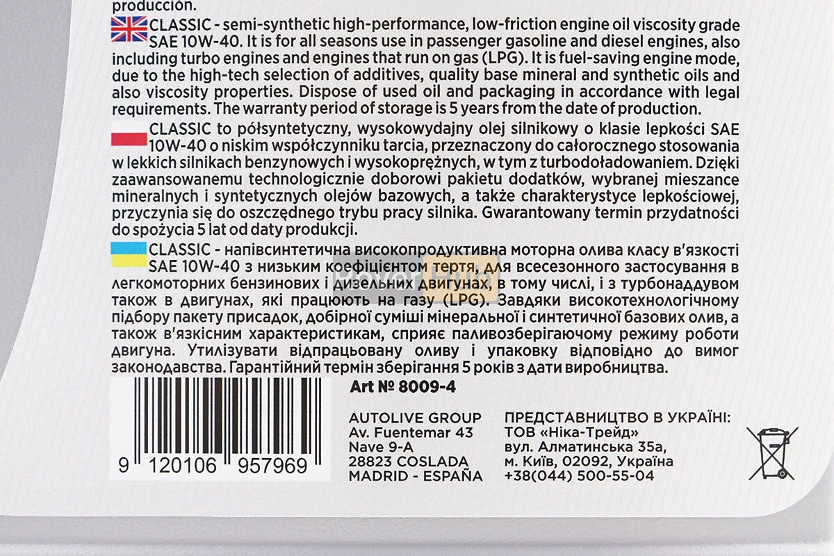 Олива 4T 10W-40 - напівсинтетична універсальна "Classiс", 4L