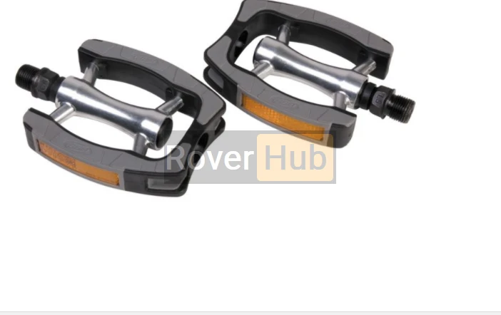 Високоміцні суцільні педалі з корпусом з алюмінію.Рамка з композитного матеріалу.Вбудовані світловідбивачі для безпеки.Міцна вісь CrMO.Протиковзне гумове покриття зверху та знизу.