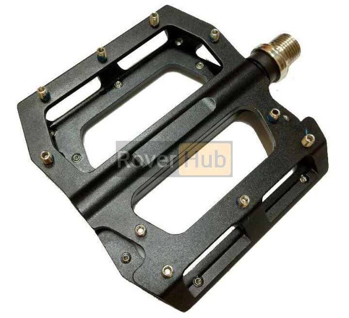 Платформні педалі. Alu фрезерований анодований корпус, промислові підшипники, змінні шпильки. Картонний retail упаковка, чорний колір.