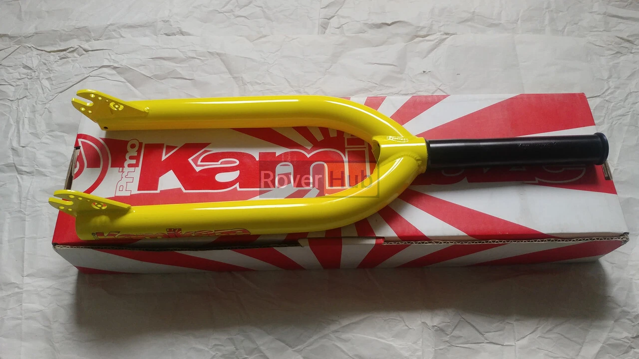 Вилка BMX Primo Kamikaze V2 - Повністю термооброблена хромомолібденова вилка від Primo, інтегроване проставне кільце, конічні труби, фрезерований шток, 4мм дропаути з вибігом 35мм, компресійний болт із загартованого алюмінію в комплекті.