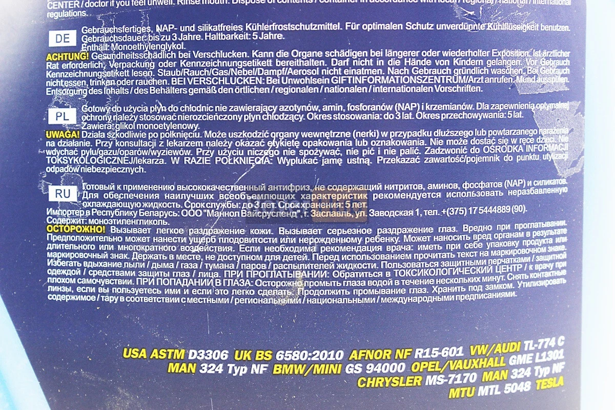 Рідина охолоджуюча -40°C "АНТИФРИЗ АG11", блакитна 5L
