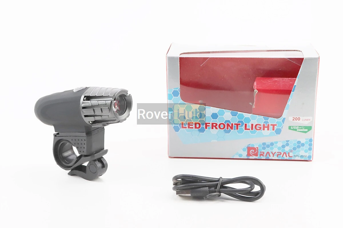 Фонарь передний 1 диод 200 lumen, Li-ion 3.7V 1200mAh зарядка от USB, влагозащитный, чёрно-серый