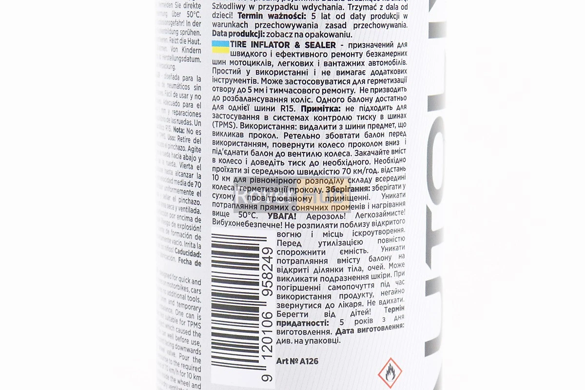Герметик для быстрого ремонта шин "TIRE INFLATOR SEALER", Аэрозоль 450ml