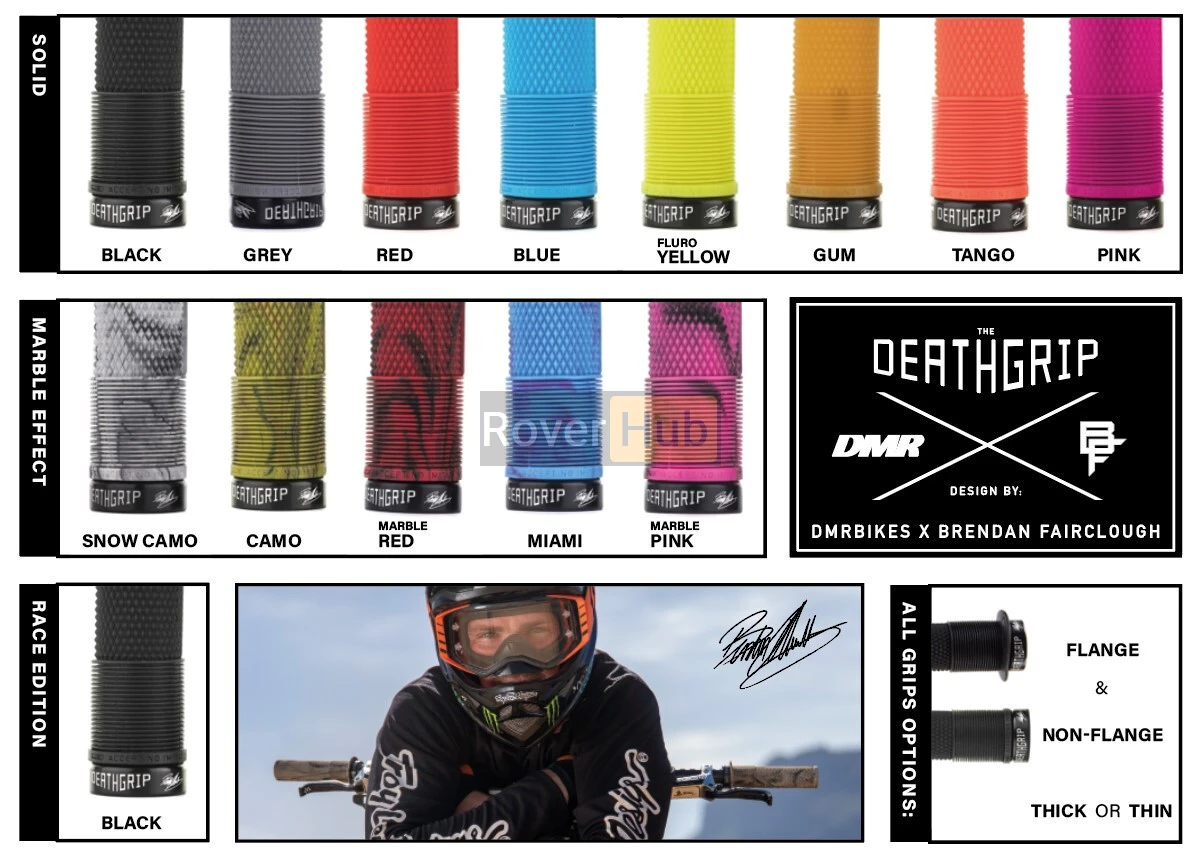 DMR DeathGrip - це високоякісні велосипедні гріпси, розроблені у співпраці з легендарним британським маунтинбайкером Brendan Fairclough. Ці гріпси створені для забезпечення максимального комфорту та контролю, підходять для всіх типів гірських велосипедів, від All Mountain до Downhill.