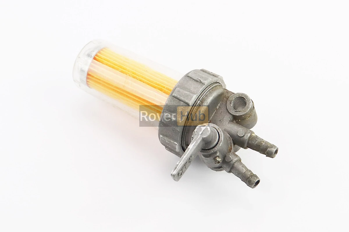 Кран топливный + фильтр в пластмассовом, прозрачном корпусе (вход/выход вверх)