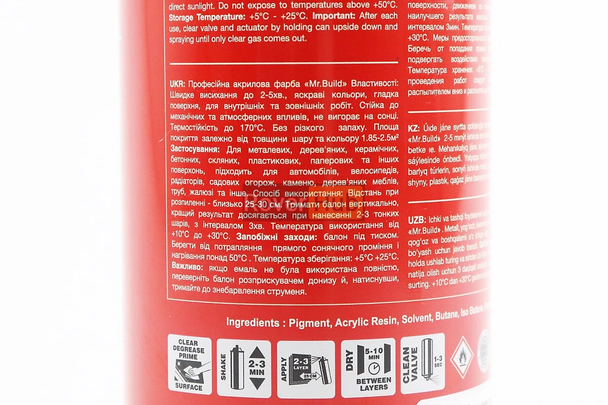 Краска акриловая №04 "КРАСНЫЙ ГЛЯНЦЕВЫЙ", Аэрозоль 400ml