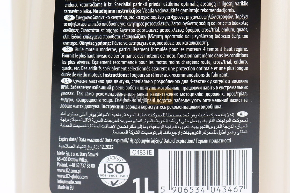 Масло 4T 10W-40 - полусинтетическое для мототехники "4T STROKE XL", 1L