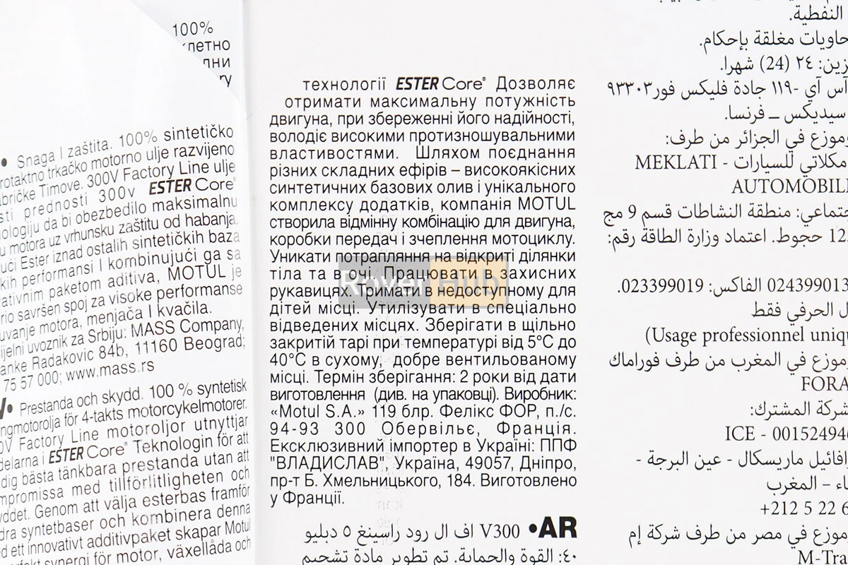 Масло 4T 5W-40 - синтетическое универсальное "300V", 1L