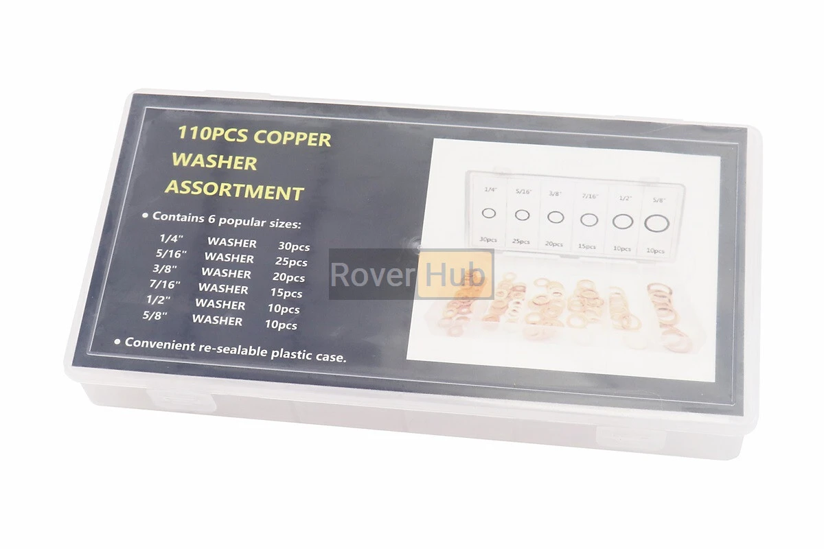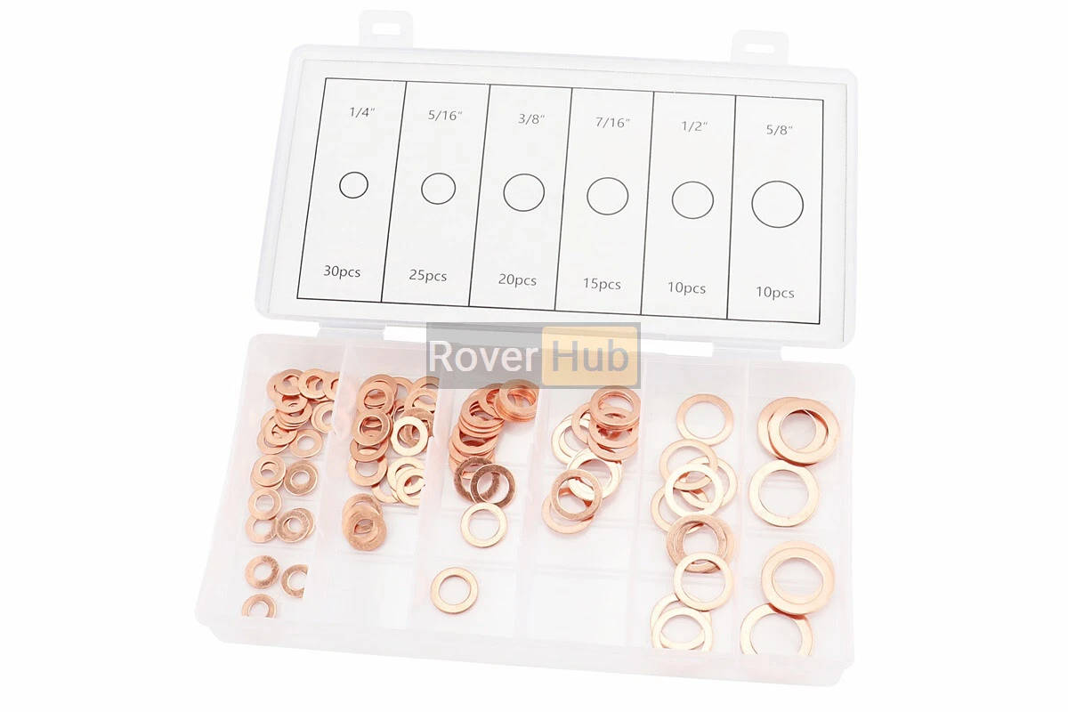 Набор шайб медных (6х10х1, 8х14х1, 10х16х1, 12х16х1,5, 14х20х2, 16х22х1,5) 6 видов, 110шт