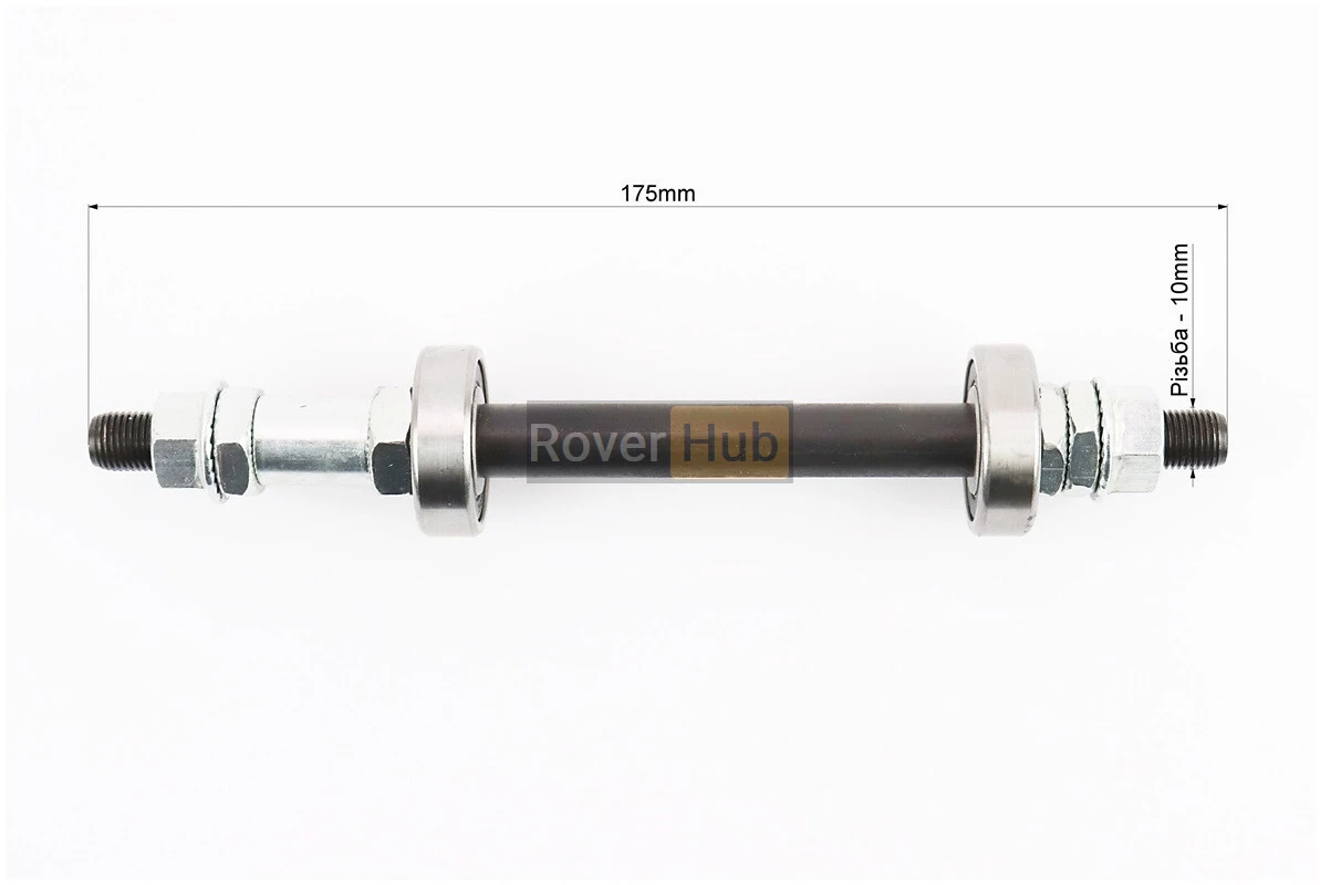 Ось задняя MTB M10х175мм в сборе, пром-подшипники 6200 2RS, под гайку, чёрная (Disk-brake резьба)