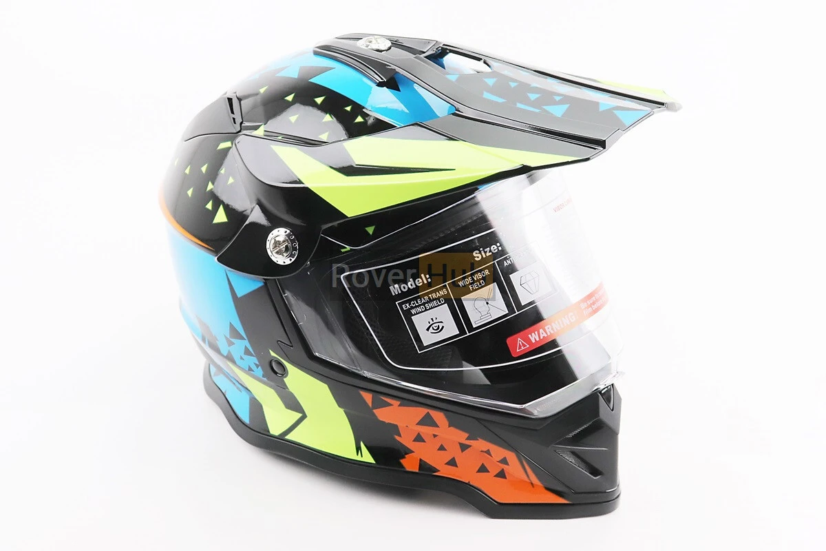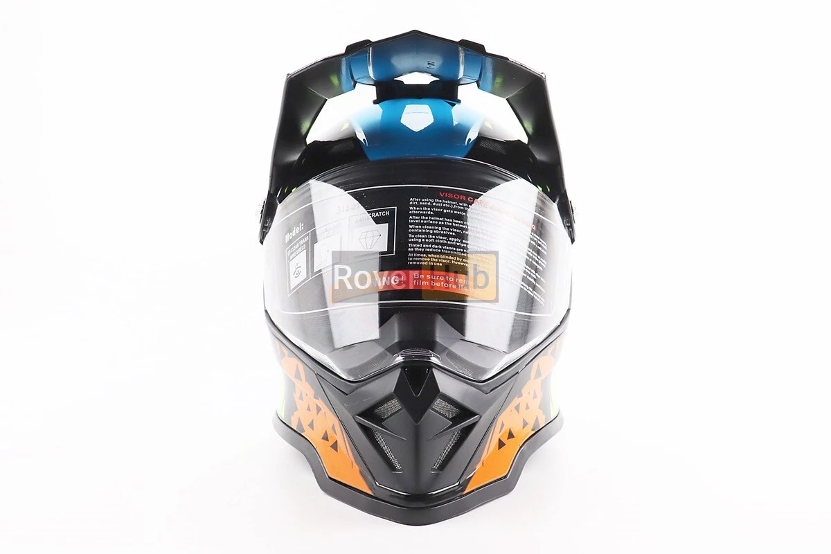 Шлем кроссовый/эндуро/АТV со стеклом BLD-819-7 М (57-58см), ЧЕРНЫЙ/ЖЕЛТО-СИНИЙ