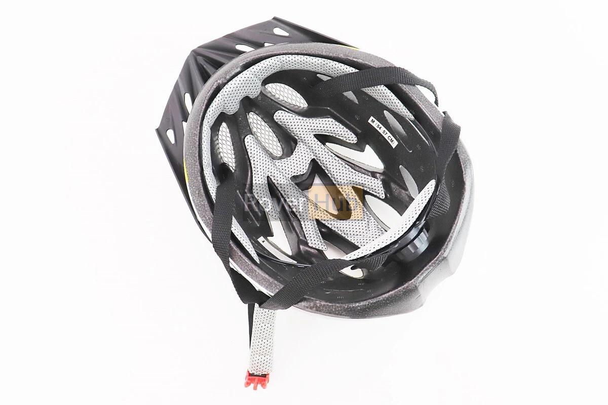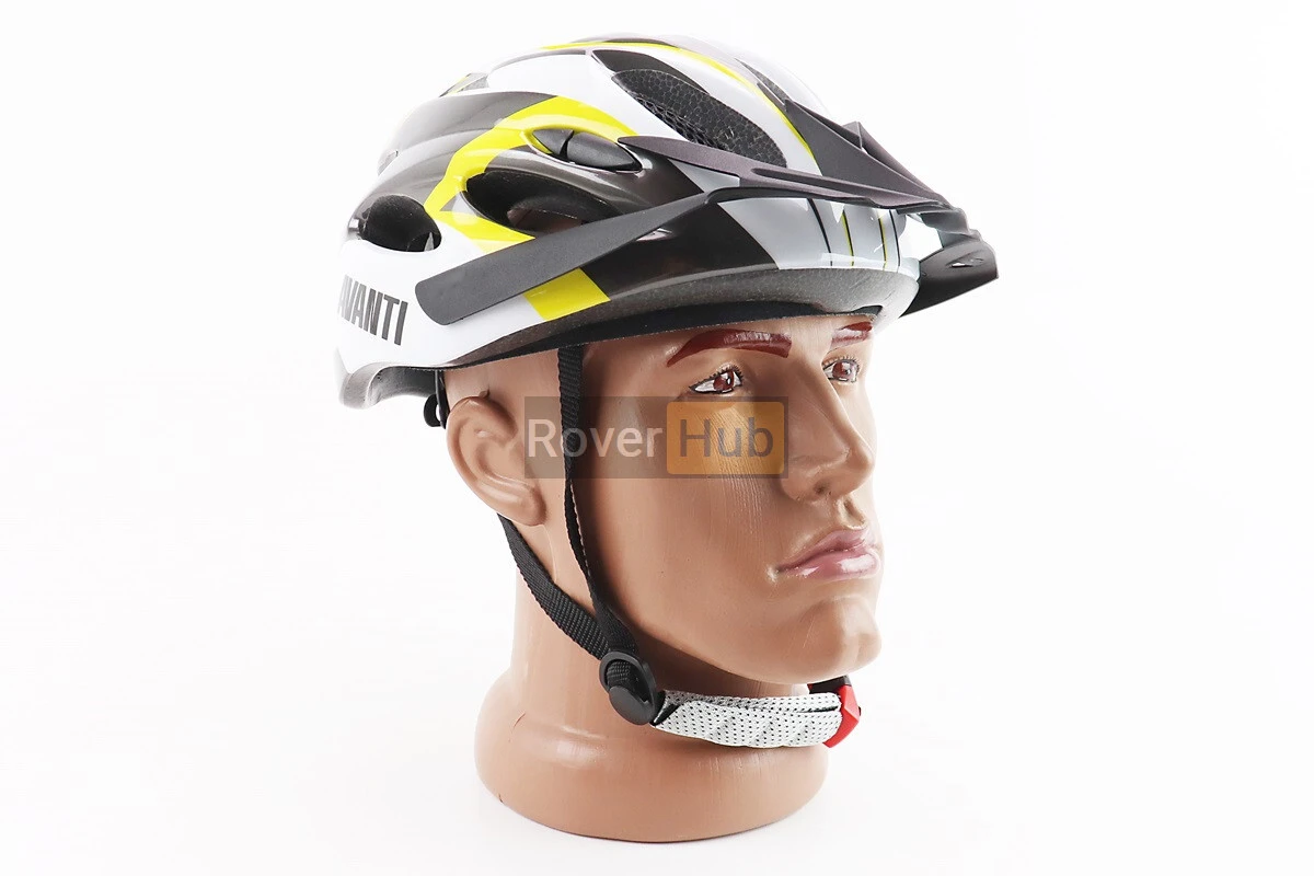 Шлем велосипедный M (54-57 см) съёмный козырёк, 18 вент. отверстий, черно-бело-желтый AVHM-02