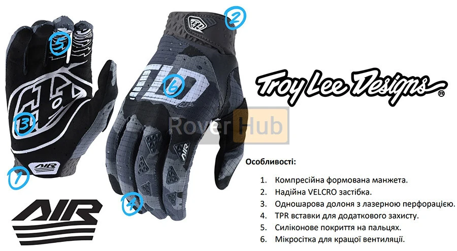 Перчатки Troy Lee Designs AIR Glove мають ергономічну конструкцію, яка забезпечує точне прилягання та відмінну посадку. Вони оснащені посиленими вставками на ключових місцях, таких як долоня та пальці, для підвищення міцності та захисту від потертостей.