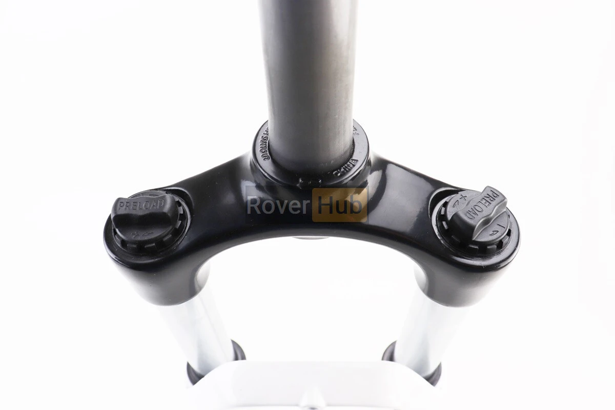 Вилка 27,5" амортизационная, без резьбы 1-1/8" (28,6мм), шток 255мм, с ходом 80мм, Disk-brake, Preload, алюминиевая, белая XCE 28