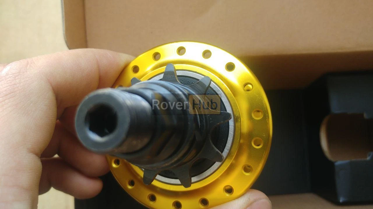 Ось полая, из 4130CrMo с последующей термообработкой, имеет диаметр 14мм и отверстие под 6мм шестигранник.