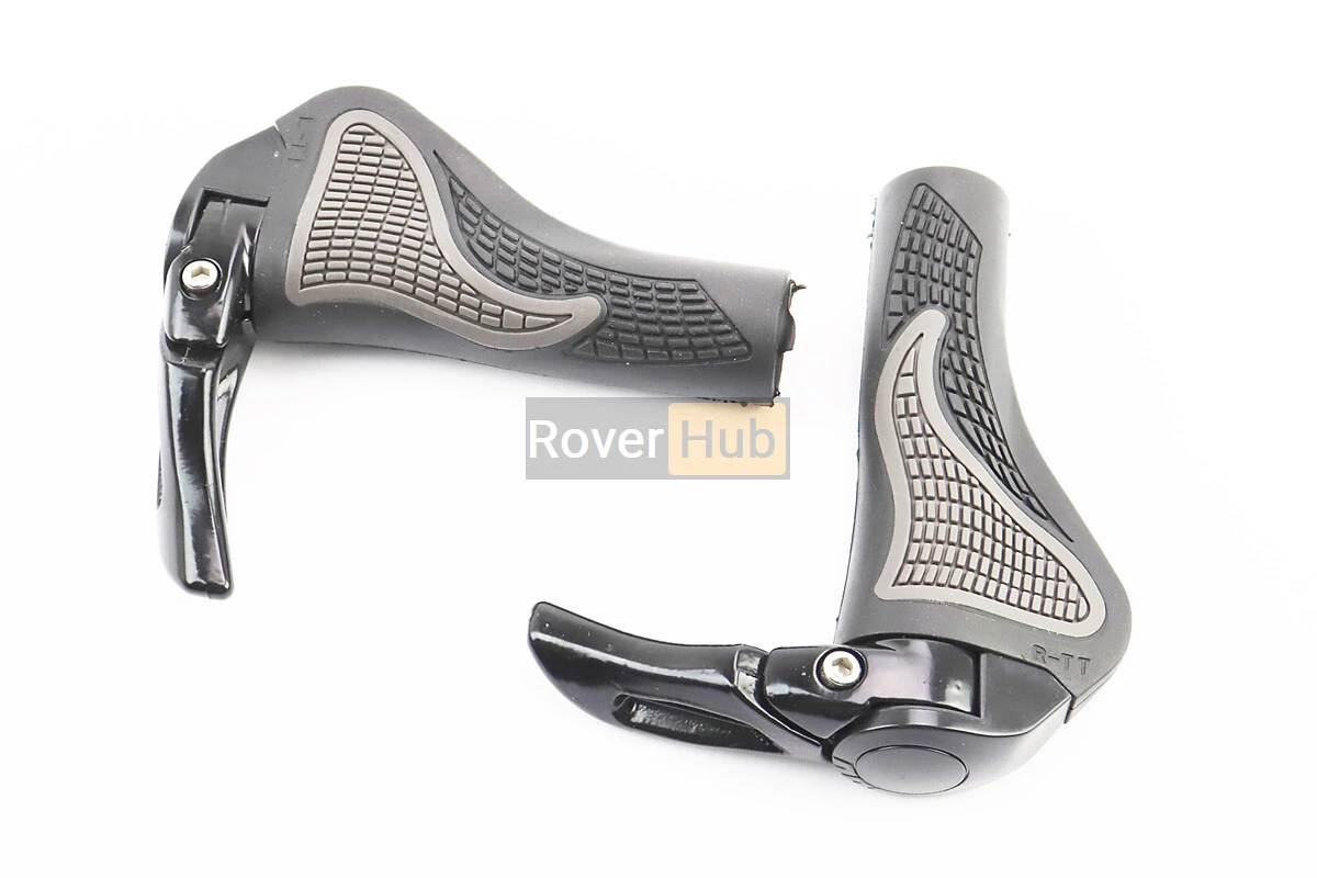 Ручки керма 140мм з затискачем Lock-On, ергономічні з ріжками, чорно-сірі RB-BT1008
