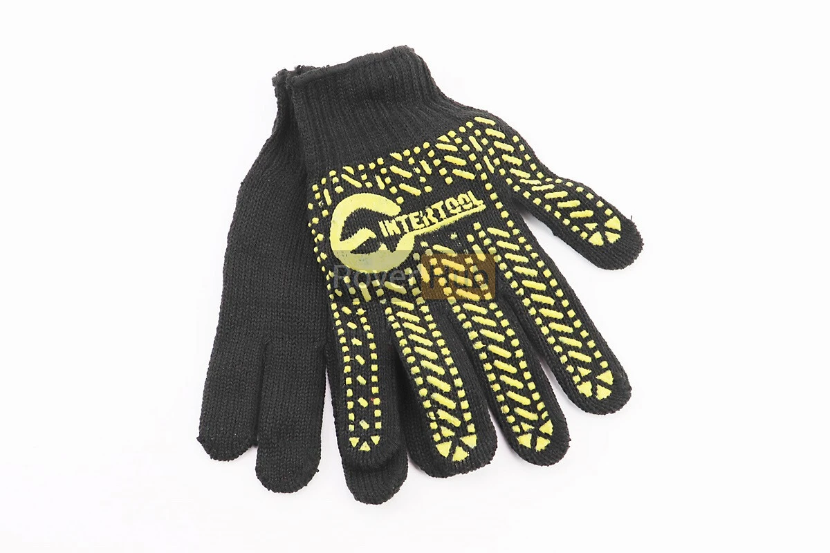 Рукавиці робочі 60% бавовна/40% поліестер 10", клас в'язки 7, чорний, жовта точка ПВХ SP-0128