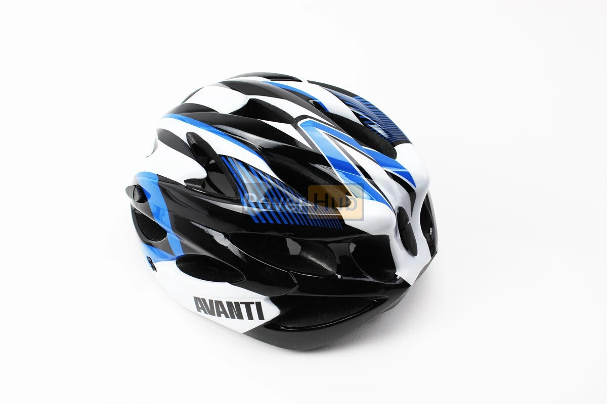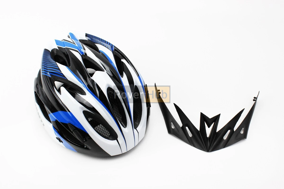 Шолом велосипедний M (54-57 см) знімний козирок, 18 вент. отворів, чорно-біло-синій AV-01