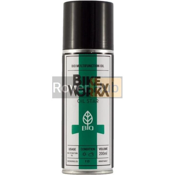 Універсальна олія BikeWorkX Oil Star BIO 200 мл. Це універсальна рідина загального призначення на основі ріпаку, це натуральний продукт. Придатний для екстреного змащування ланцюга, ослаблення іржавих з'єднань та запобігання появі іржі. Не небезпечна для довкілля.