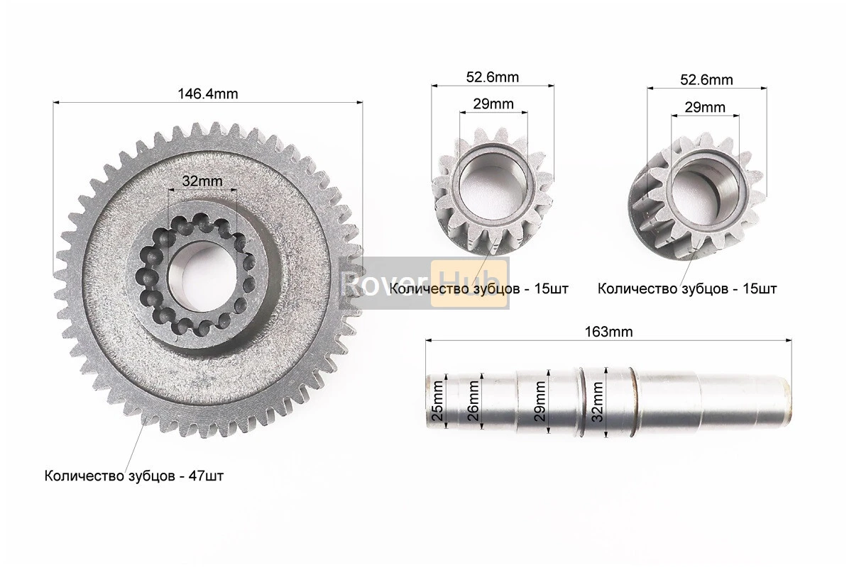 Вал КПП диференціала+шестерня Z-47+шестерня-2шт Z-15, к-кт 4шт 101-2 (можливий наліт)