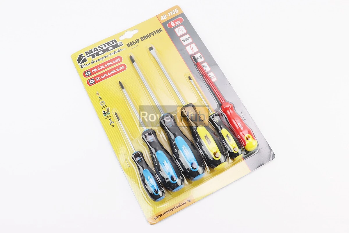 Викрутки набір 6шт PH0х75мм PH1х100мм PH2х125мм SL3х75мм SL6х125мм SL4х100мм 1000V 40-1146