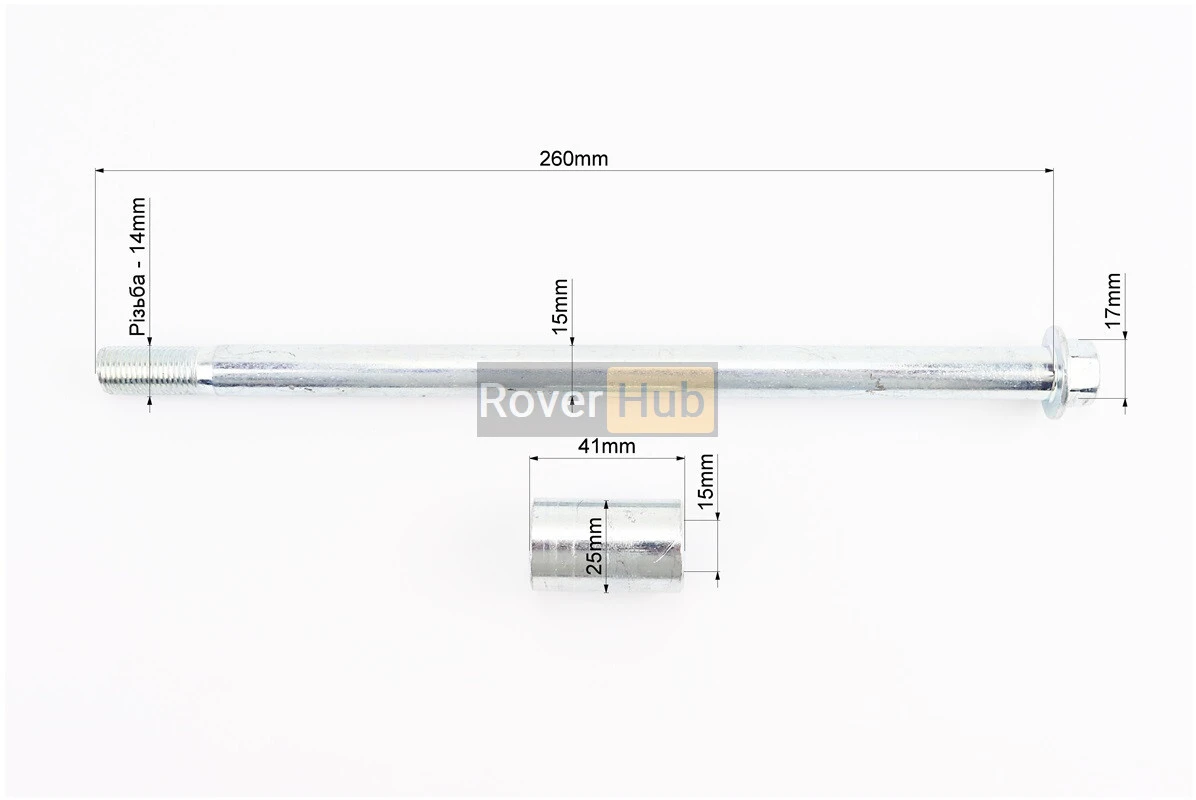 Вісь колеса заднього d15mm; L260mm + втулка, гайка