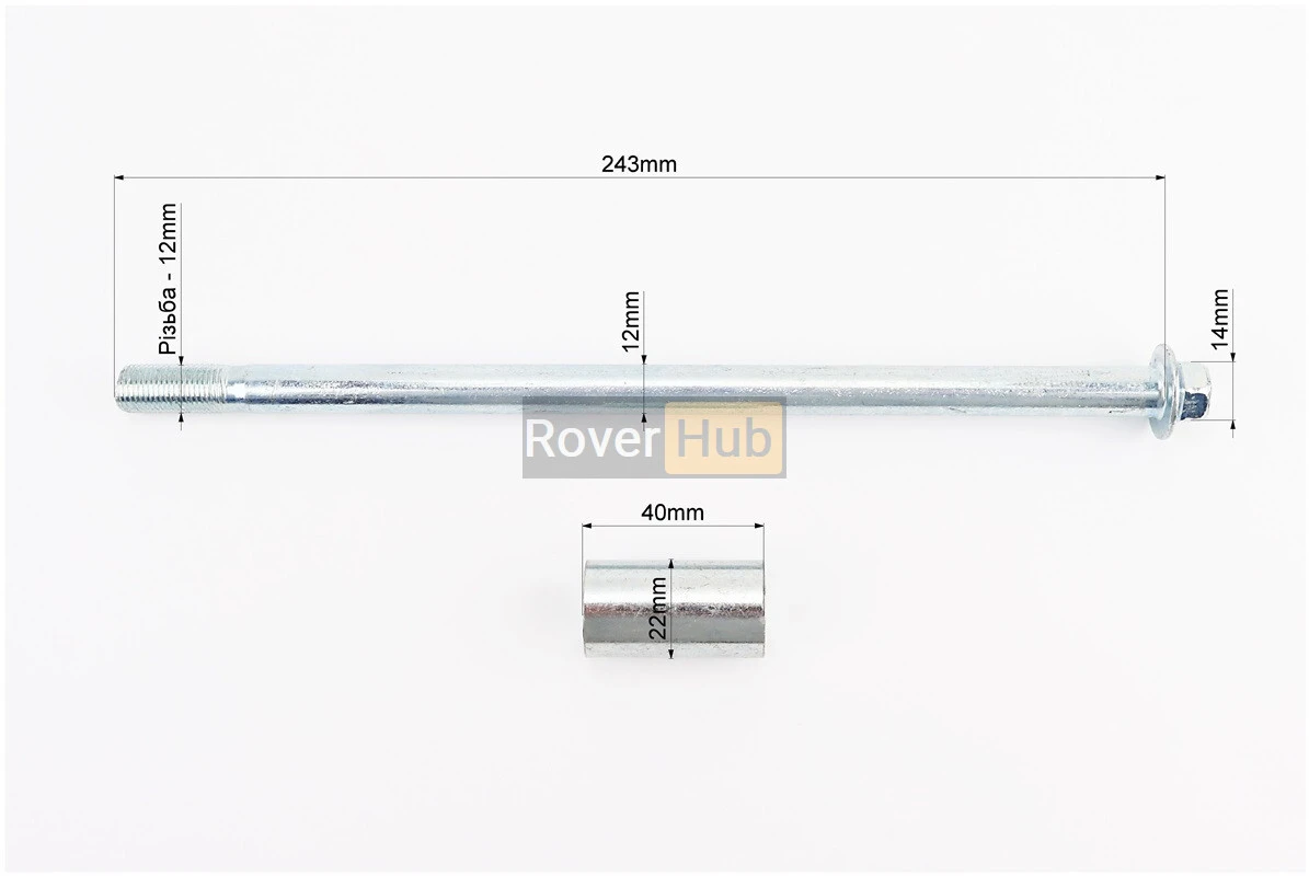 Вісь переднього колеса d12mm; L243mm + втулка, гайка