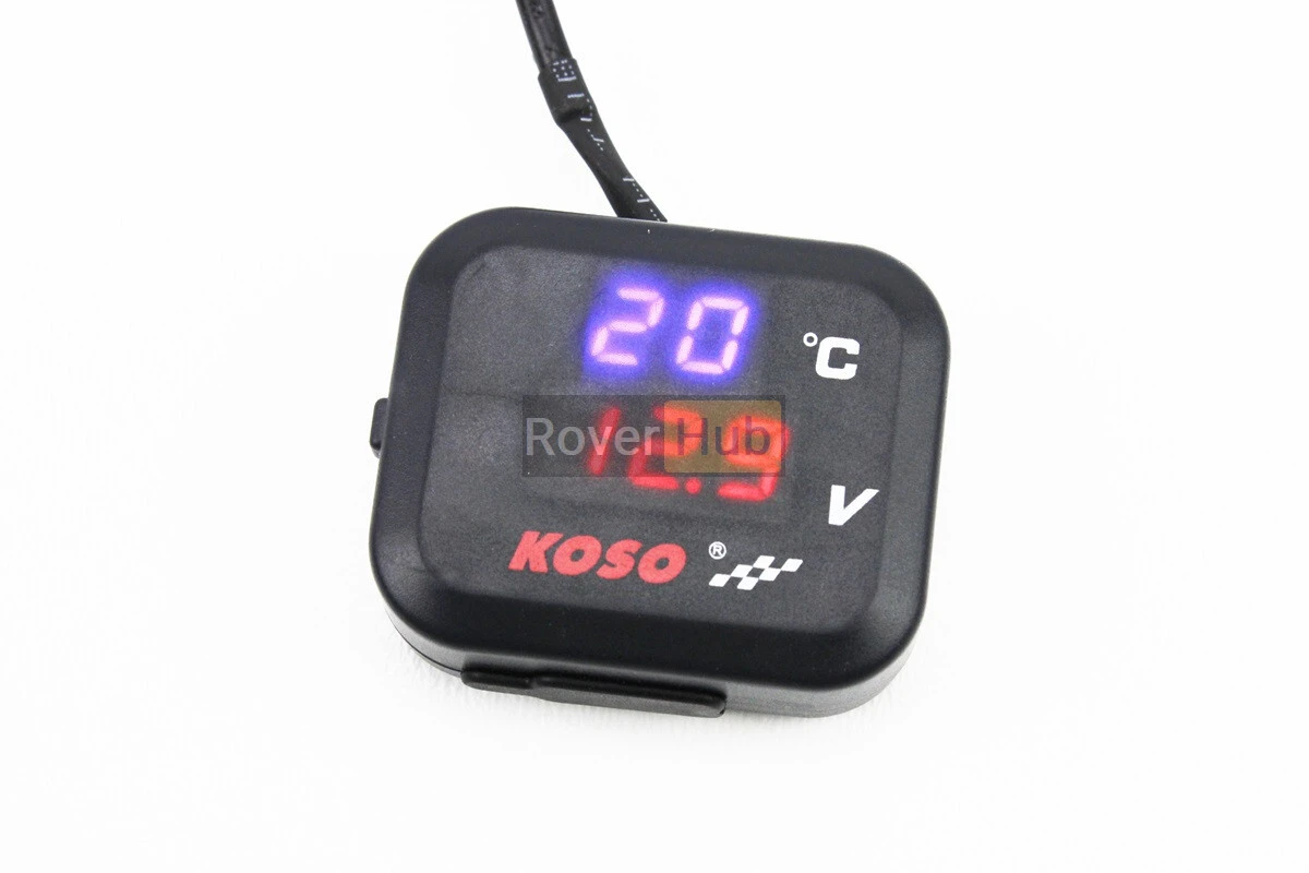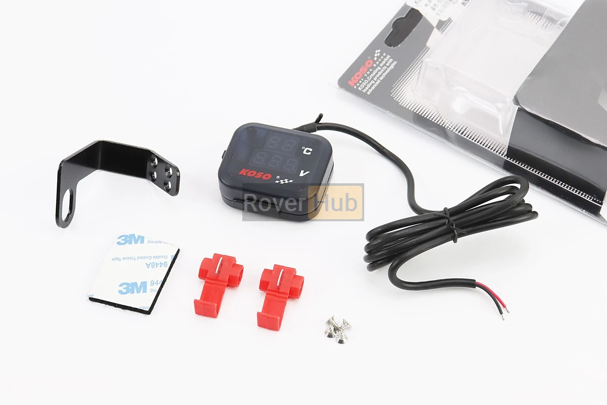 ВОЛЬТМЕТР з дисплеєм, червоний циферблат + датчик температури повітря + кріплення (універсальний, компактний)