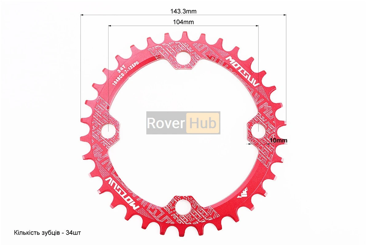 Зірка передня MTB Narrow Wide 34Т (BCD:104мм), алюмінієва, червона